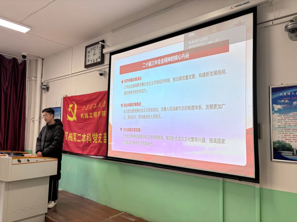 12月12日下午,机械第二本科党支部组织开展“深入学习贯彻习近平总书记关于全面深化改革的一系列新思想、新观点、新论断和党的二十届三中全会精神”学习研讨会,白艺宁主持。