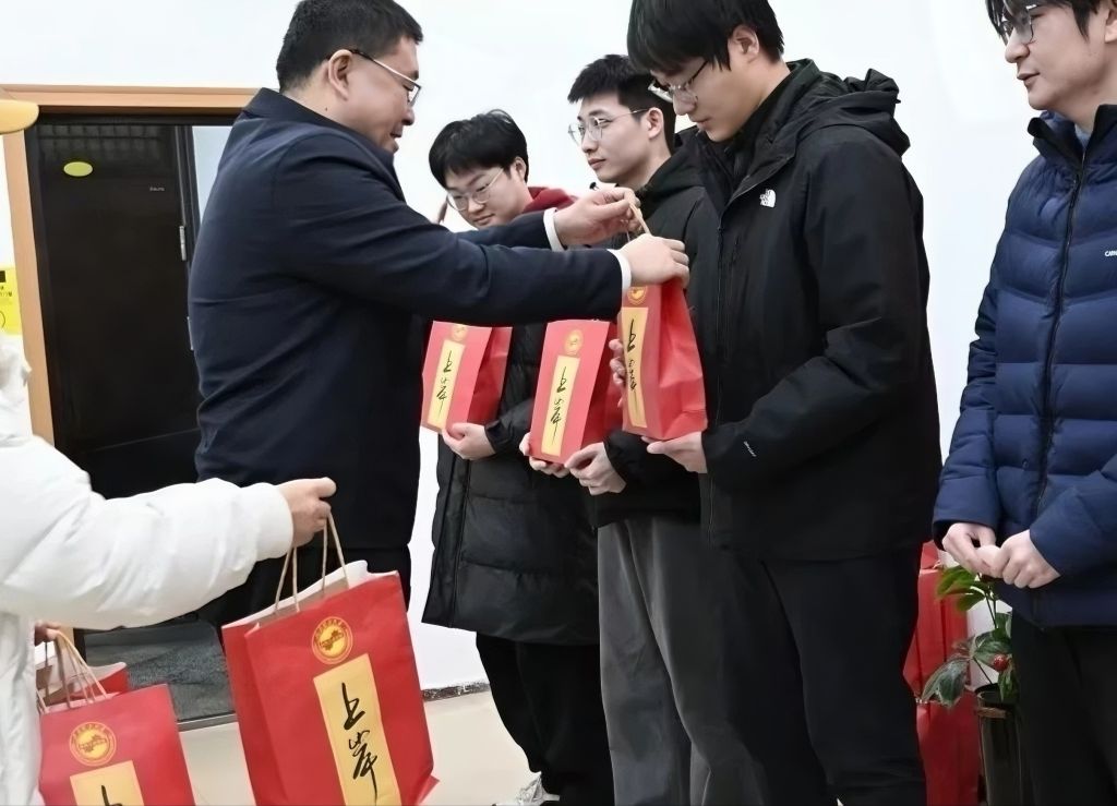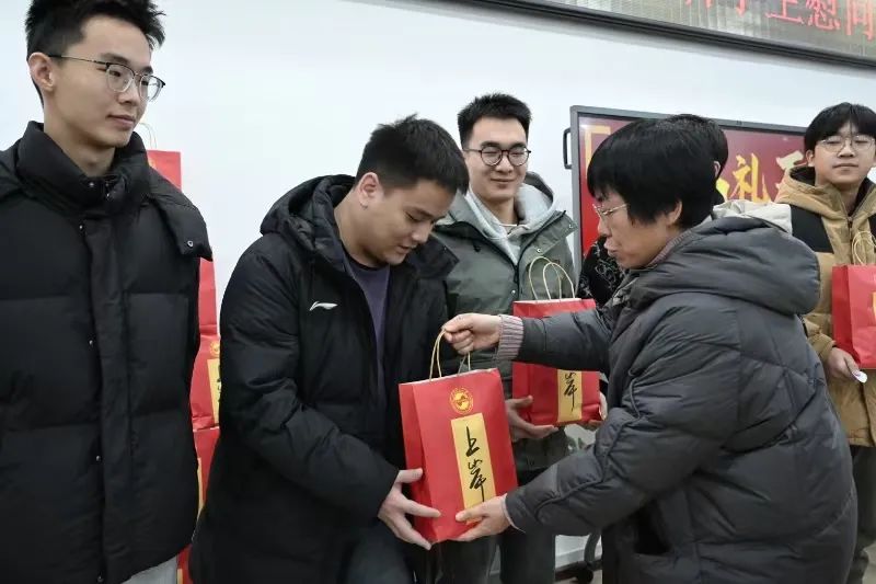随后,进入了考研福包的发放环节。学院领导逐一为参会学生递上考研福包并合影留念,学子们手捧福包,眼中闪烁着对未来的憧憬与决心。