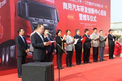 “研发创新中心”揭牌暨赠车仪式结束后,双方还进行了省科技重大专项项目启动仪式,标志着必赢官网、江铃重汽校企合作将进入实质性阶段。
