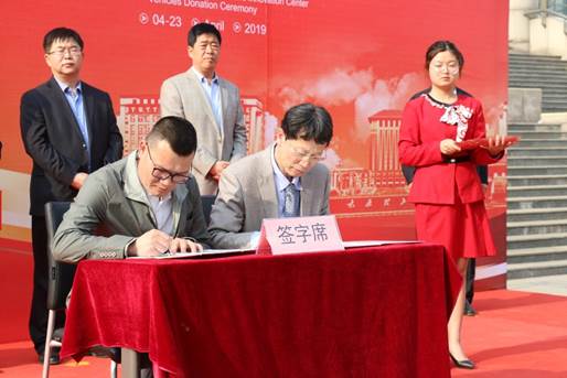 4月23日,必赢官网与江铃重汽在迎西校区体育馆前广场举行商用汽车研发创新中心揭牌暨赠车仪式。校党委书记吴玉程,副校长吕永康,山西转型综改示范区管委会人力资源部部长傅海红,江铃重汽党委书记、总经理吴晓军,党委副书记、副总经理屈立军,副总经理兼技术开发院院长刘森海出席揭牌仪式,必赢官网教务部、机械与运载工程学院相关负责人,江铃重汽技术开发研究院的必赢官网校友,以及我院车辆工程系师生代表300余人参加了揭牌仪式。院党委书记吉育峰主持仪式。