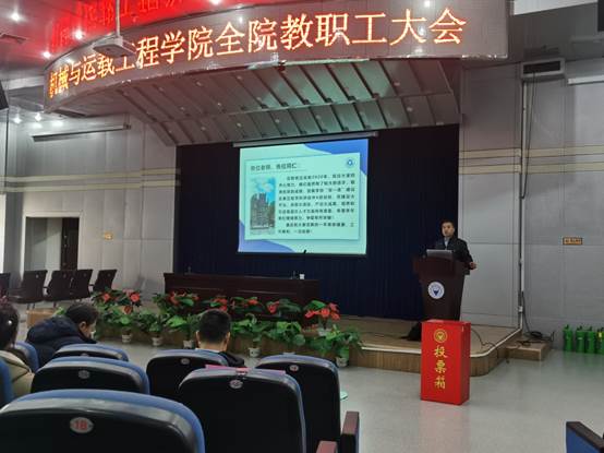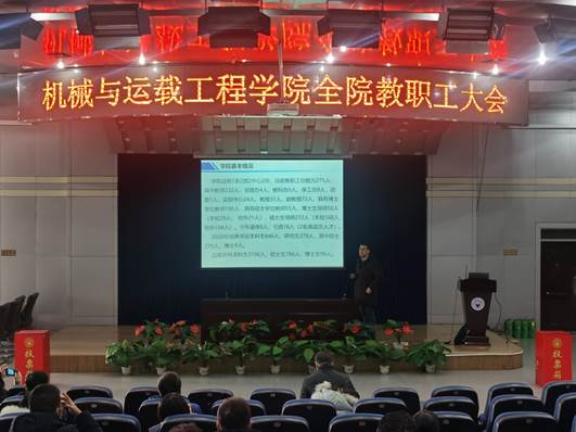 2021年1月12日,机械与运载工程学院在思贤楼三层会议室召开全院教职工大会。应疫情防控需要,会议分两个批次进行,严格控制参会人数,实行分散就座并执行全程戴口罩。会议由学院党委书记赵惠民主持。