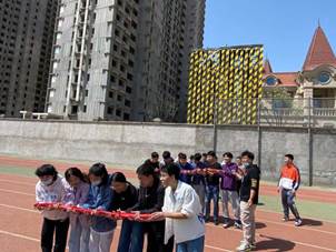 本次素质拓展活动以宿舍为单位,设有“穿越火线运送物资”、“跳跃封锁线”、“护送转移”、“齐心协力踢毽子”以及“横渡赤水河”五个项目。各宿舍成员参与积极,密切配合,齐心协力。在踢毽子场地,斑斓的毽子飞在天上,你传我接;横渡赤水河这一环节,同学们“一二一”的喊声阵阵传出,加油呐喊声回荡在操场上空。各队队员热情饱满、斗志高昂,各个项目竞争激烈,精彩纷呈,充分展现了各宿舍拼搏向上的良好风貌。