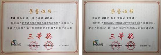 经过作品视频展示评审,线上分组答辩评审等环节的激烈角逐,我院黄庆学院士团队的“TFB(tyut force robot)”战队设计完成的“矿井透水事故机器人救援探测系统”获得仿真组三等奖;王学文教授团队的 “黑金VIP”战队设计完成的“履带式液压支架机器人数字孪生监控系统”获得集成组三等奖。