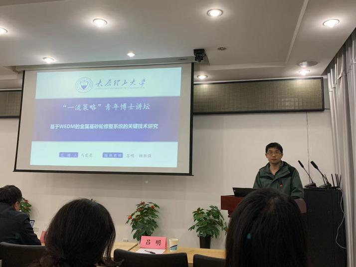 2021年11月6日上午,“一流策略”青年博士生讲坛第156~157期在机械馆二层会议室举行,机械与运载工程学院2018级博士生马虎亮为在场师生作了题为《基于WEDM的金属基砂轮修整系统的关键技术研究》的报告,机械与运载工程学院2018级博士生石慧婷为在场师生作了题为《滚磨光整加工磨液新体系设计与应用基础研究》的报告。太重集团教授级研究员李爱峰、机械与运载工程学院吕明教授和杨胜强教授出席报告会并对主讲人报告进行点评,相关学科学生聆听了报告会。