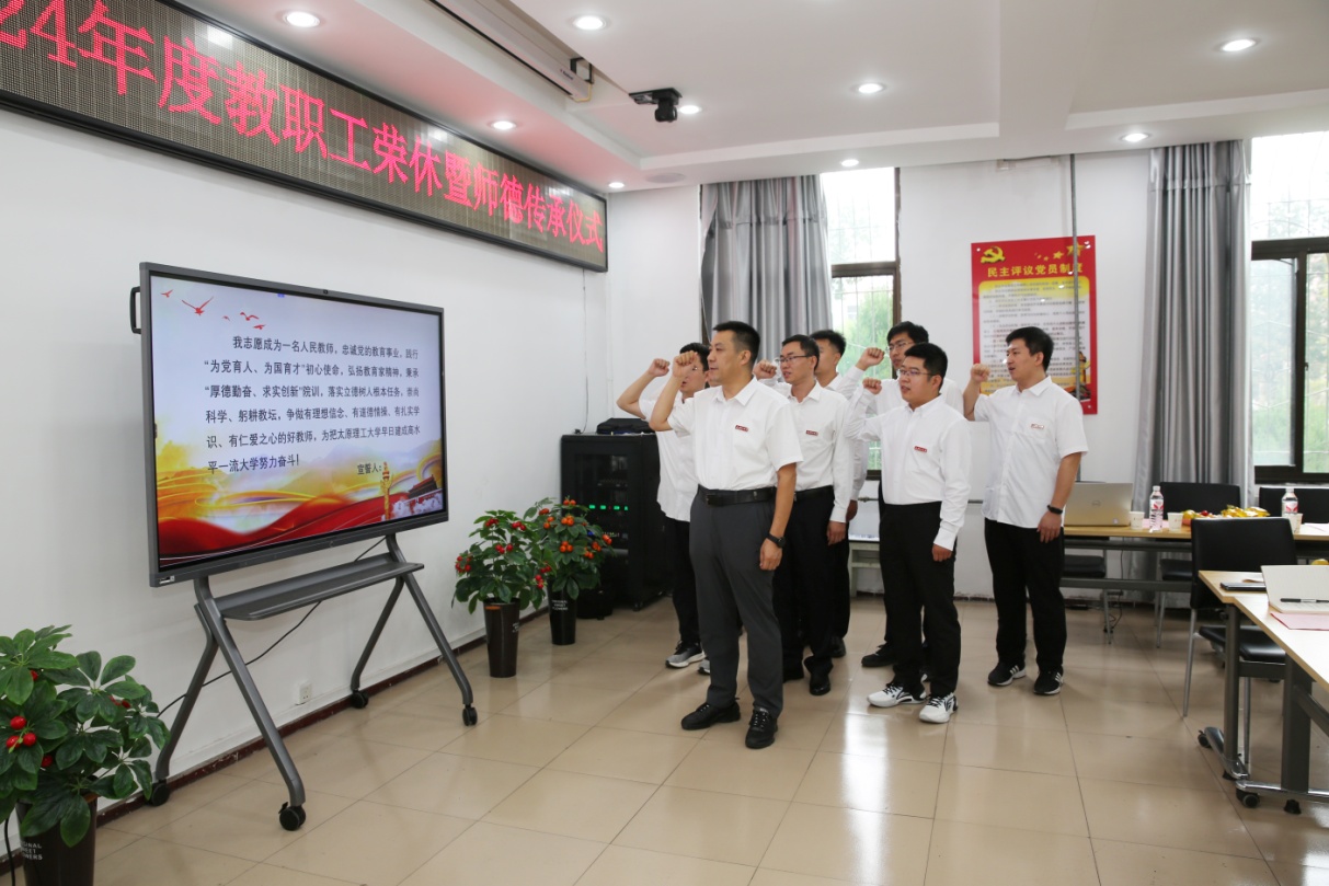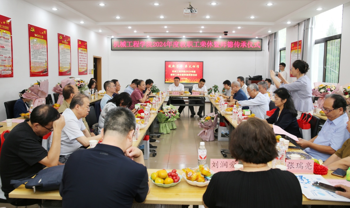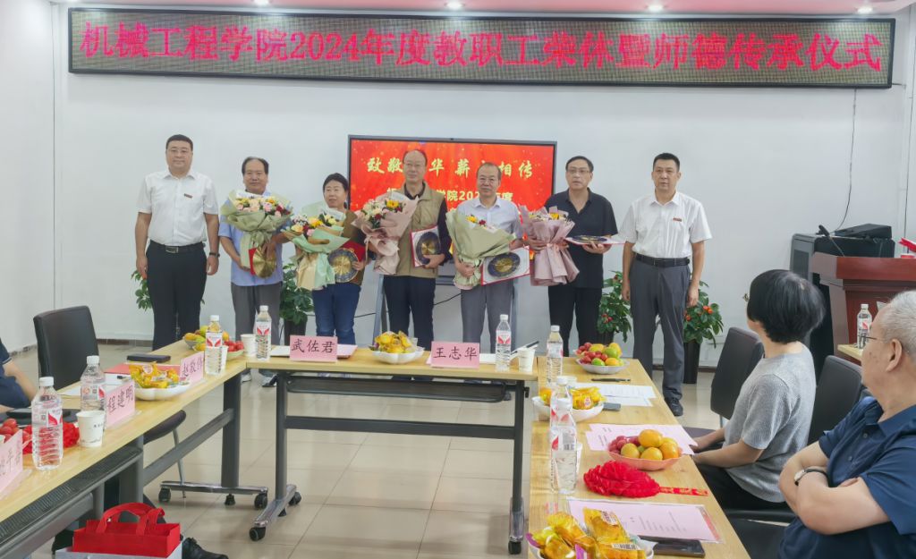 2024年9月9日上午9点,我院在机械馆二层大会议室隆重举行2024年度教职工荣休暨师德传承仪式,校党委常委、副校长,机械学院院长王志华,院党委书记武佐君,副院长赵敬伟,荣休教师代表,以及各系部中心、三办团委负责人、特邀教师代表和新入职教师代表参会。院党委副书记马丽莉主持会议。
