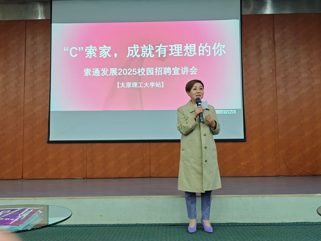 王艳松介绍了公司今年的招聘计划。她表示,企业正处于快速发展阶段,急需补充新鲜血液,此次招聘面向太原理工大学机械、材料、电力等相关专业的学生,提供包括电气、机械工程师类、材料研发工程师类及管培生等在内的多个类型的岗位。公司为员工提供明晰完善的培训体系、职业发展规划以及转岗发展机会,薪酬待遇优厚,福利完善。