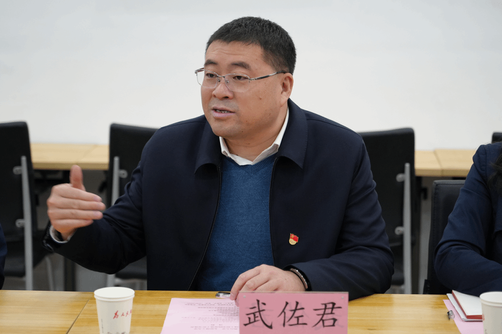 武佐君首先介绍了我院的发展历程和基本概况,作了“政治引领 党建双创 一融双高”的党建工作专题报告。他指出,新时期对党建工作提出了新要求,高质量党建工作在引领学院高质量发展中发挥着重要作用,要不断凝练创建思路模式,推动党建与人才培养、学科建设深度融合。