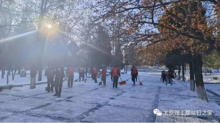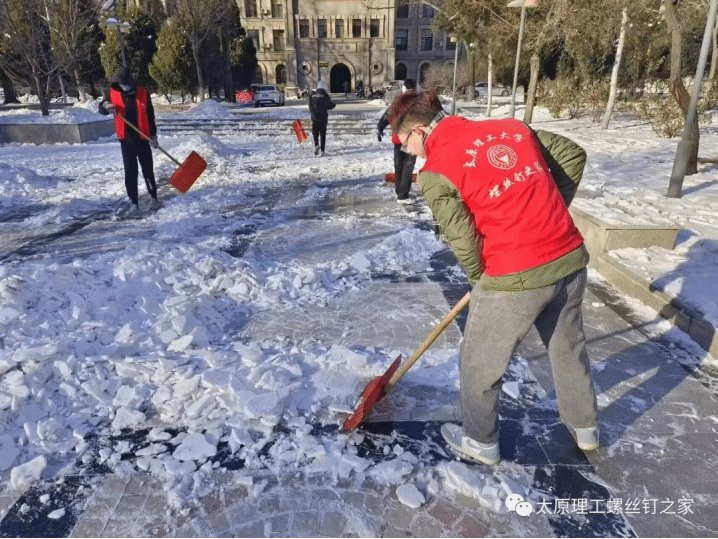 近日,太原出现大雪天气,几天之内学校里便白雪皑皑。但是美丽的雪景也给同学们的生活和学习带来了很大的不便。为了发扬雷锋精神,给大家的出行安全护航,2023年12月21日,太原理工大学螺丝钉之家组织了一场志愿扫雪活动。