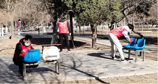 同学们擦洗公共座椅